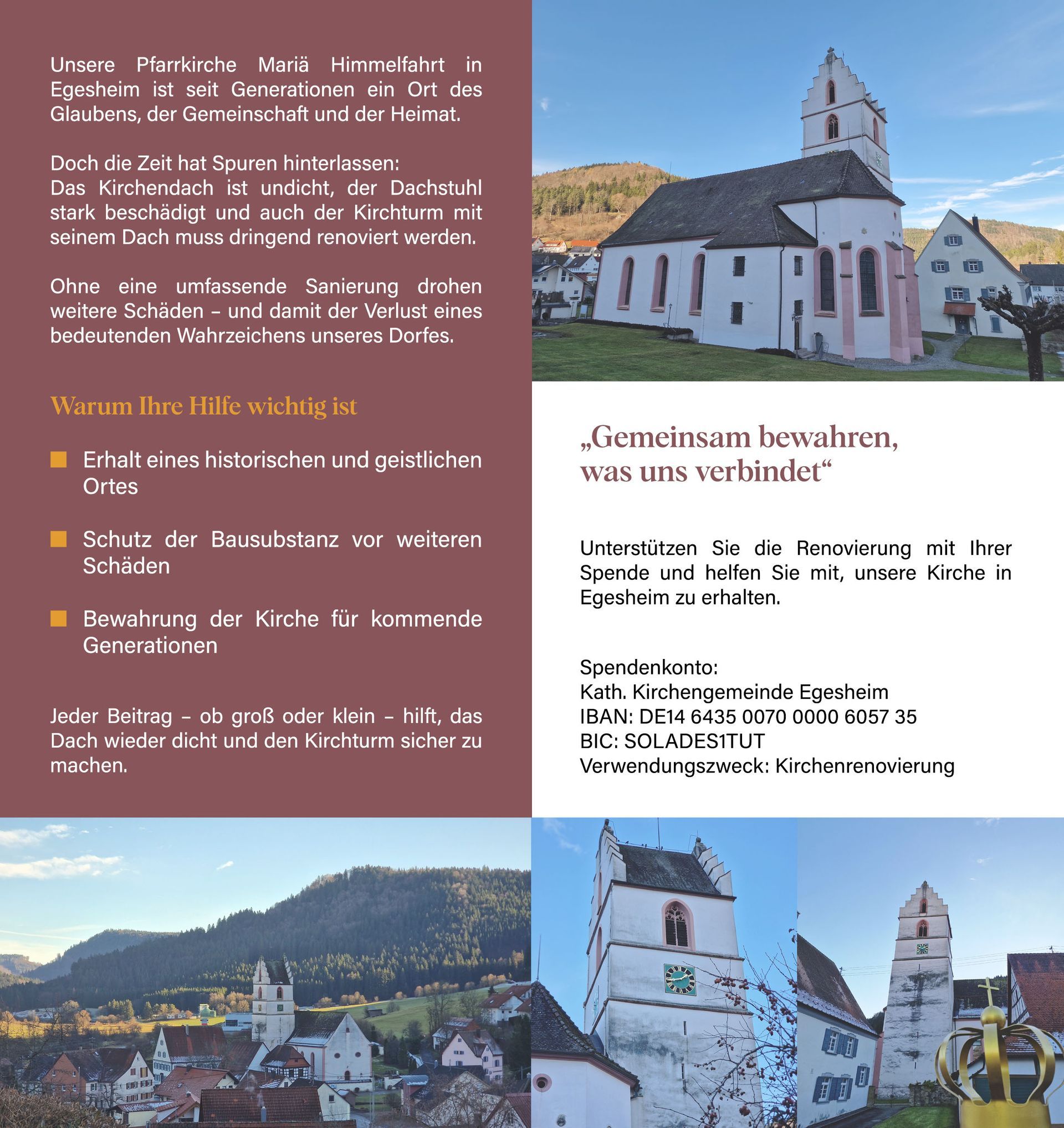 Spendenaufruf der Kirchengemeinde Mariä HImmelfahrt für die Renovierung des Kirchturms